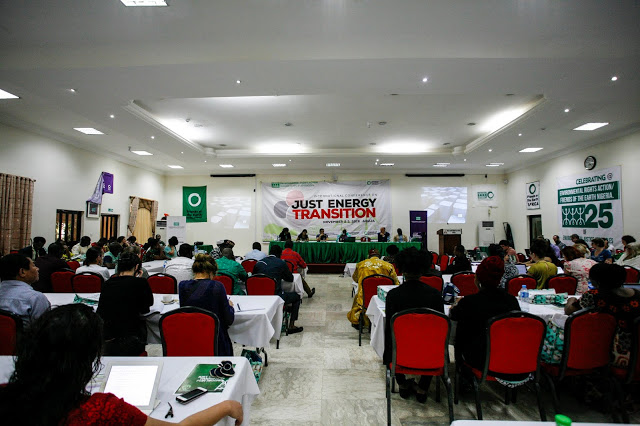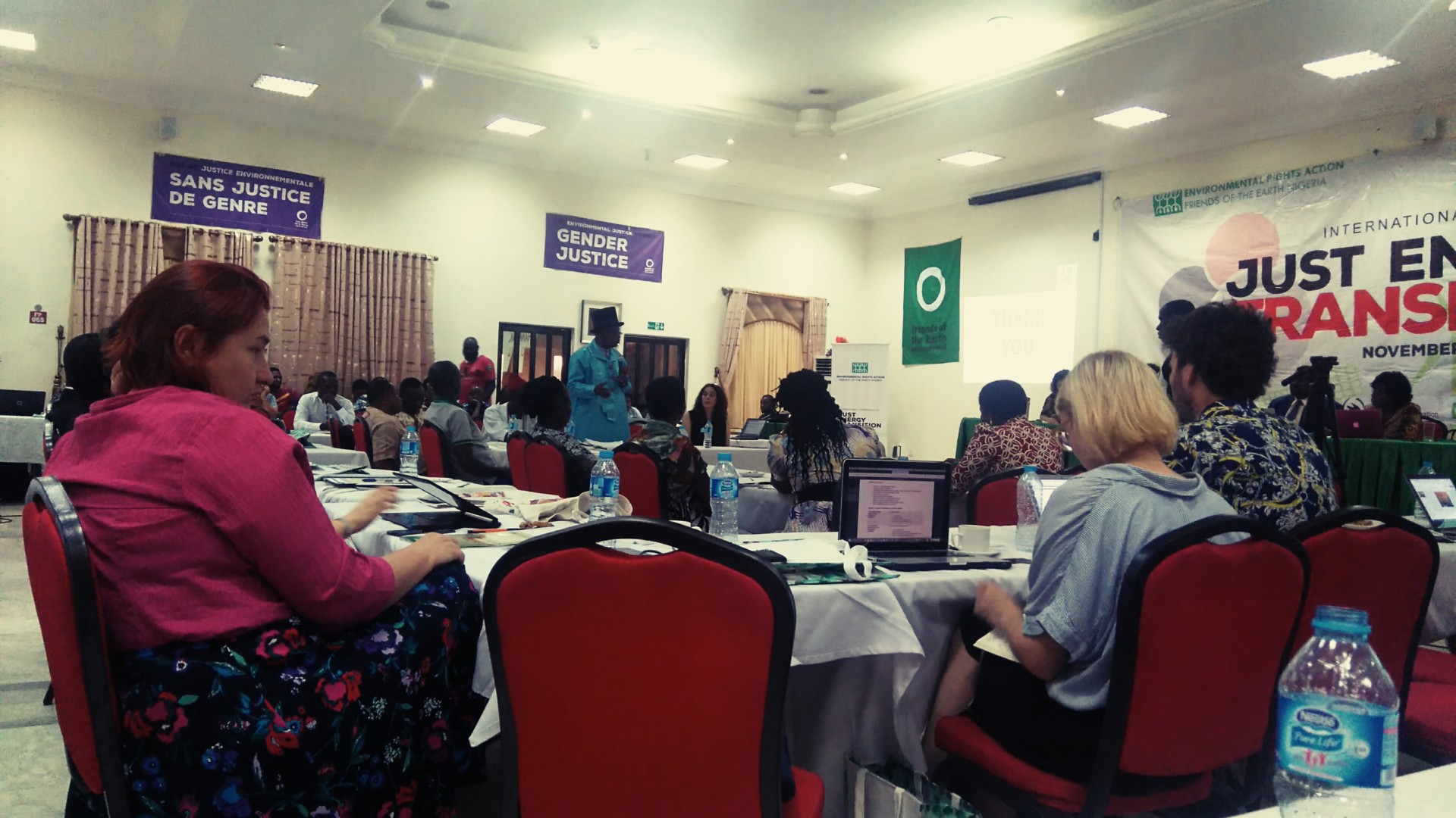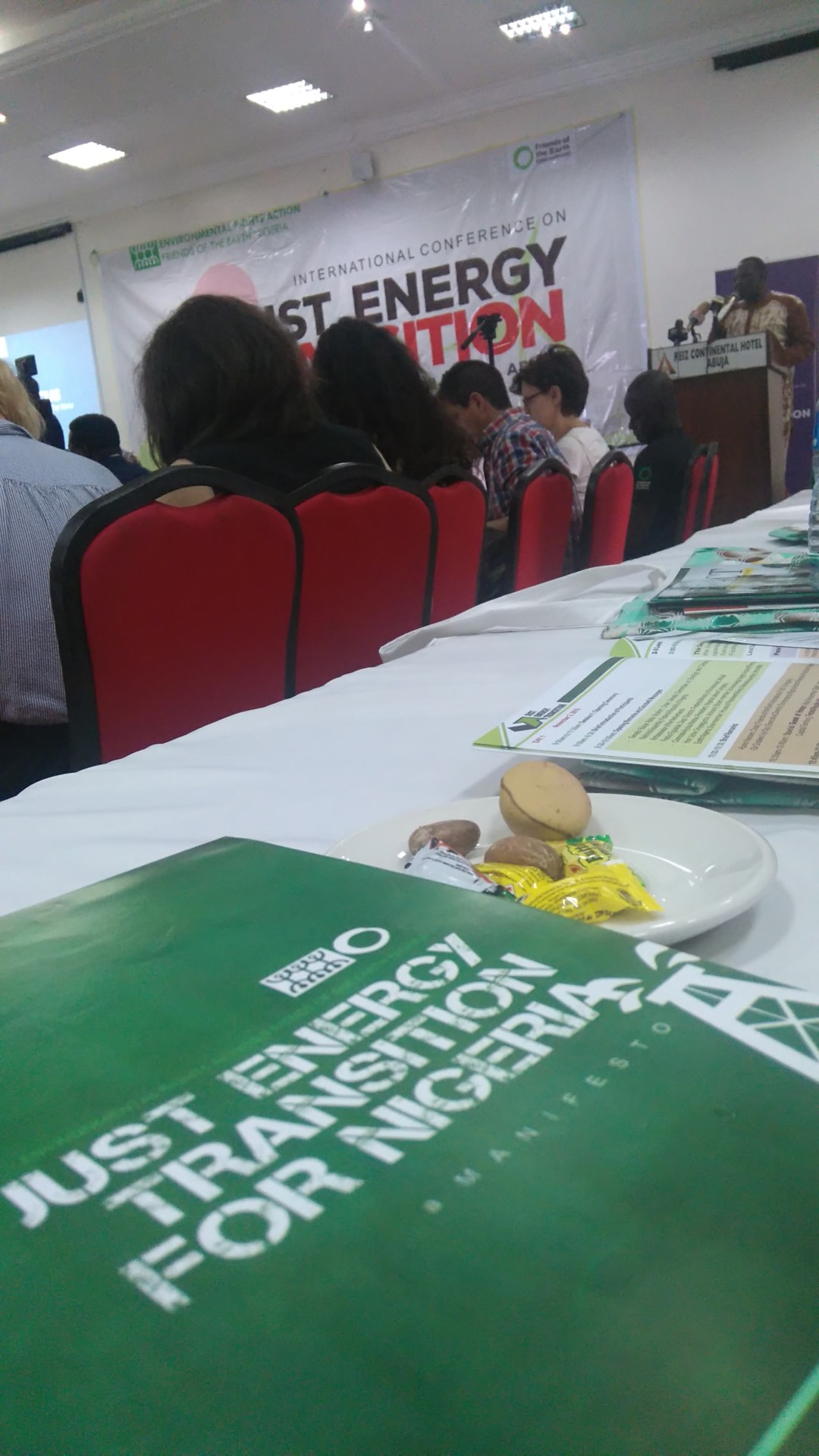 Gostitelji, Friends of the Earth Nigerija je zelo aktivna organizacija, z glavnim sloganom »Keep the oil in the soil«. Organizirali so dvodnevno konferenco o pravični energetski tranziciji. Iz dogodka izhaja, da je v afriških državah zelo aktivna civilna družba, ki sodeluje preko državnih meja. Eden izmed problemov, ki smo jih identificirali na delavnicah, pa je prepad med vladami in ljudmi.