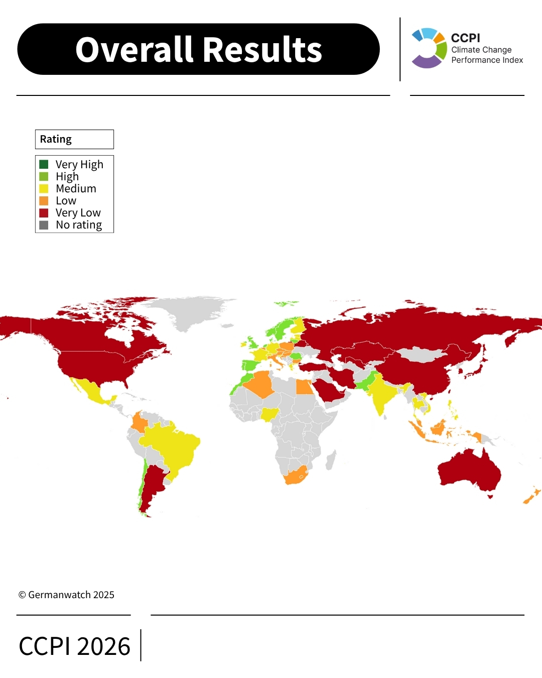 Letos lestvica CCPI, ki vključuje države odgovorne za 90 % svetovnih emisij, ponovno kaže mešano sliko: deset let po sprejemu Pariškega sporazuma je napredek viden – globalno emisije na prebivalca padajo, obnovljivi viri energije so v naglem vzponu, več kot 100 držav ima podnebne cilje za podnebno nevtralnost, vendar pa je tempo še vedno prepočasen za doseg ciljev iz Pariškega sporazuma.