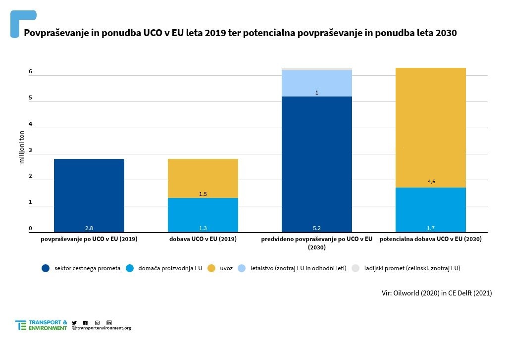 Nova študija kaže, da se bo povpraševanje po odpadnem olju za kuhanje (angl. used cooking oil; UCO) za potrebe prometa do 2030 v EU podvojilo, zaradi česar bo EU vedno bolj odvisna od dvomljivega uvoza.