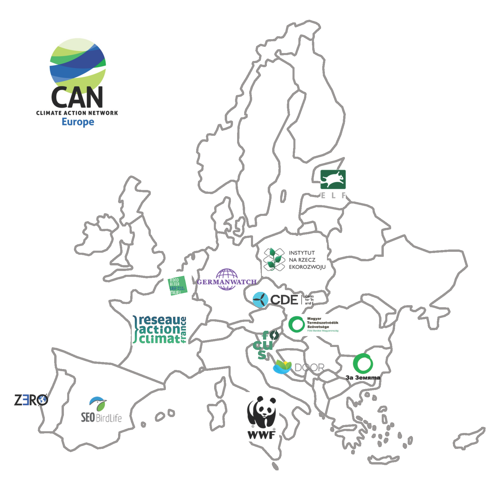 Partners: CAN Europe (coordinator, Belgium), BBL (Belgium), CDE (Czech Republic), DOOR (Croatia), ELF (Estonia), Focus (Slovenia), Germanwatch (Germany), ISD (Poland), MTVSZ (Hungary), RAC France (France), SEO/BirdLife (Spain), WWF Italia (Italy), Za Zemiata (Bulgaria), ZERO (Portugal).