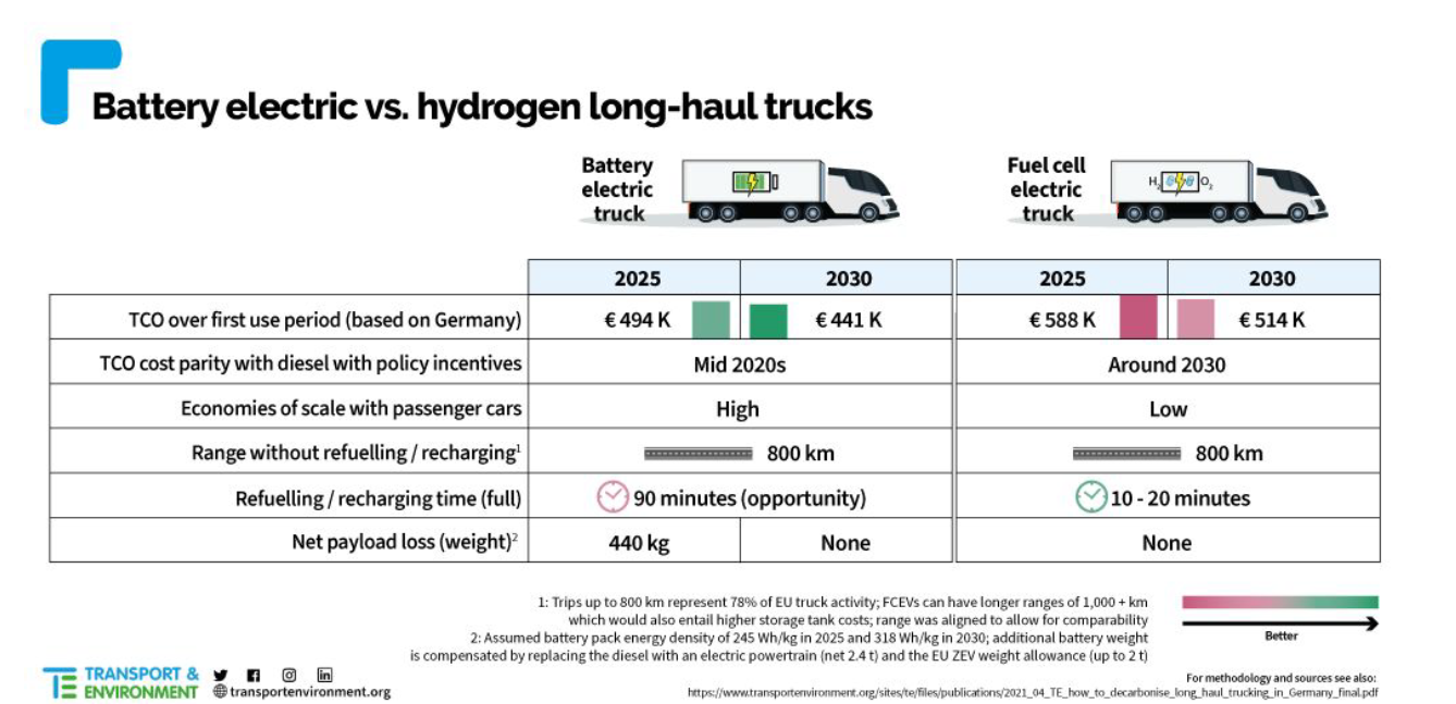 Države z dobrimi železniškimi sistemi in kratkimi razdaljami se bodo lahko izognile vodiku in e-gorivom, nekatere pa bodo primorane razmisliti tudi o slednjih kar se tiče tovornega cestnega prometa.